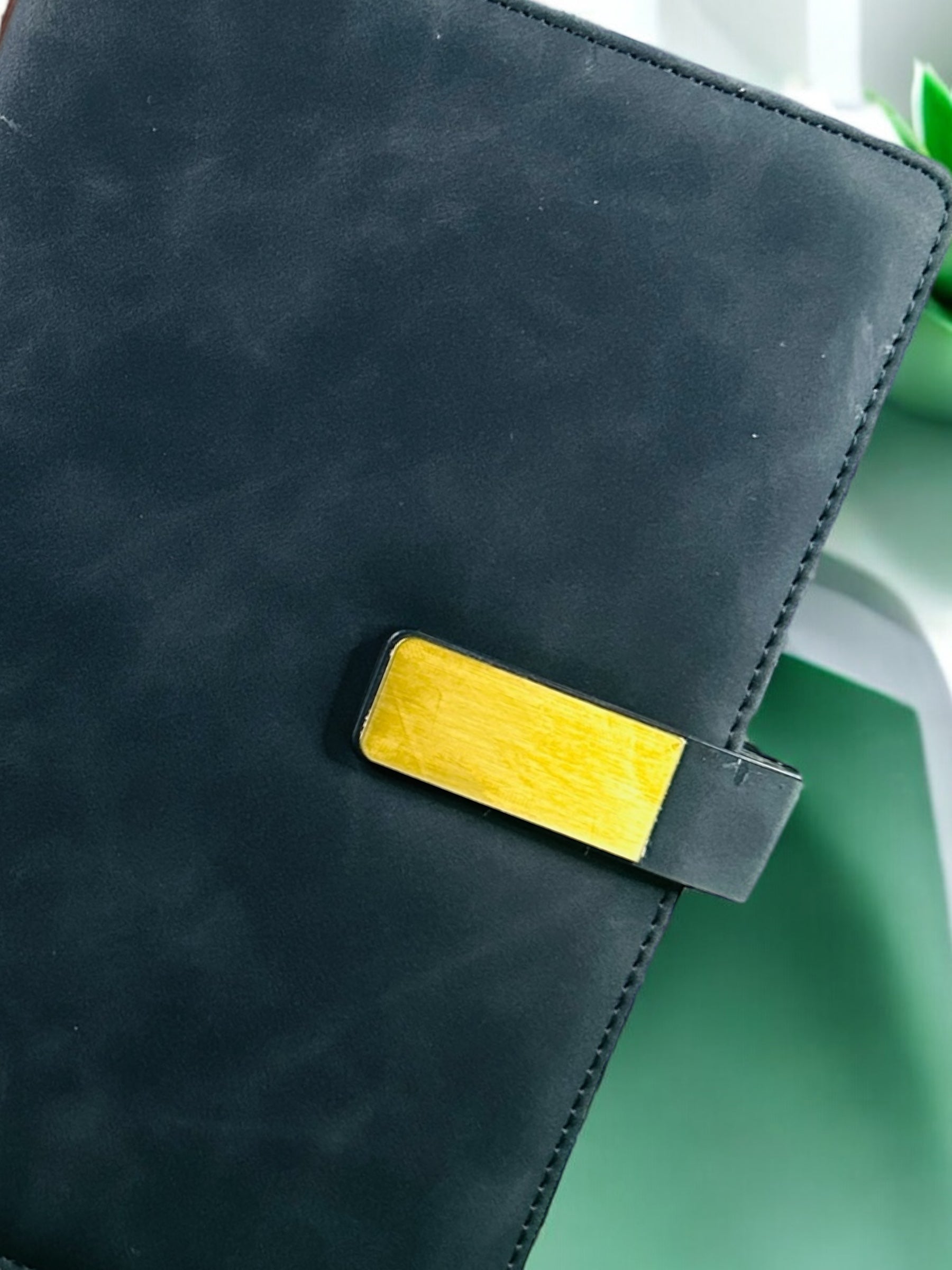 Crafted for the working professional, the BizGift Premium PU Leather A-5 Office Notebook Diary Journal offers sleek design and 192 pages of high quality 80 gsm paper. Its smart magnetic flap closure keeps your notes secure while on the go. Perfect for corporate use, this notebook is both stylish and practical.